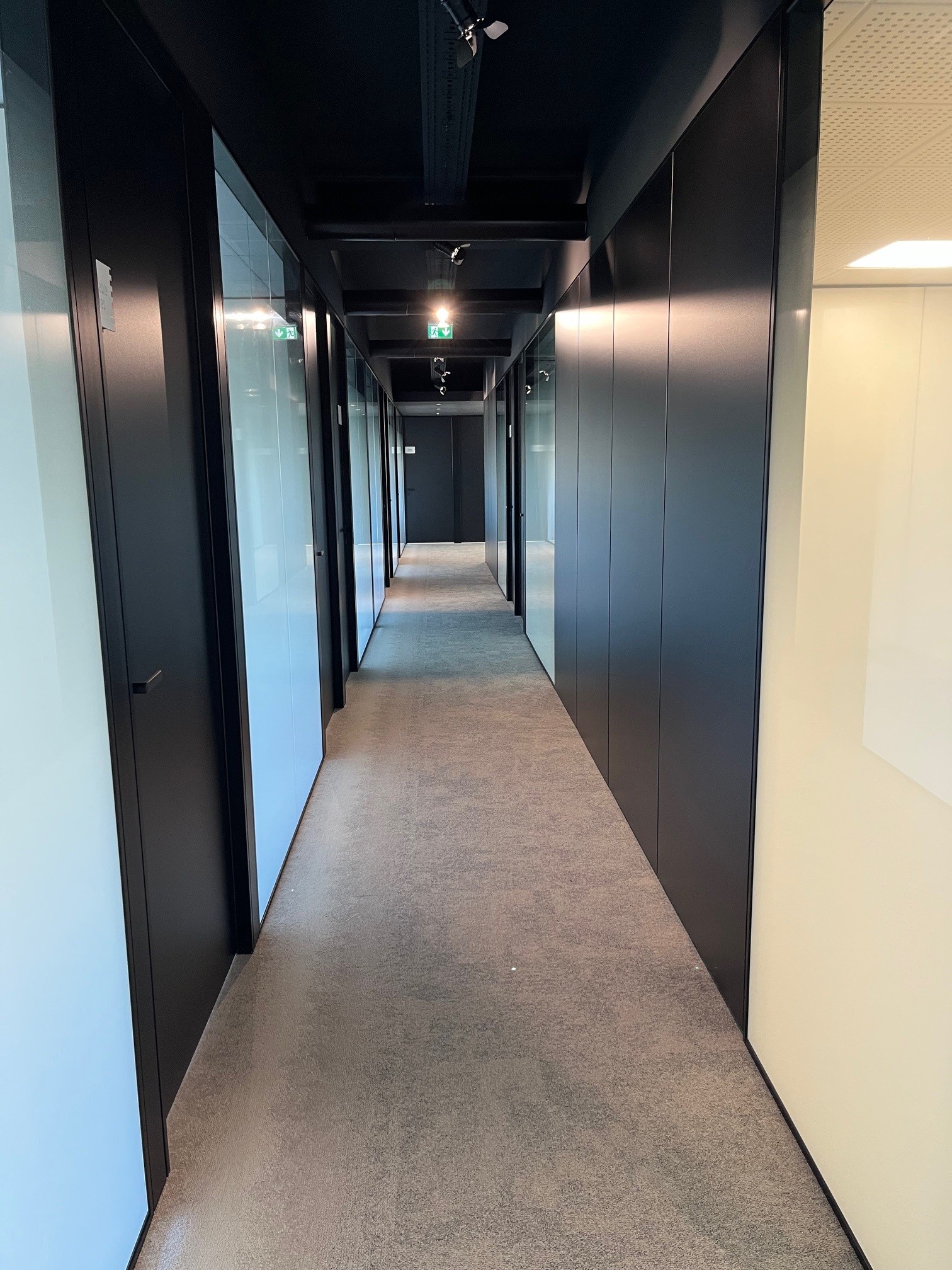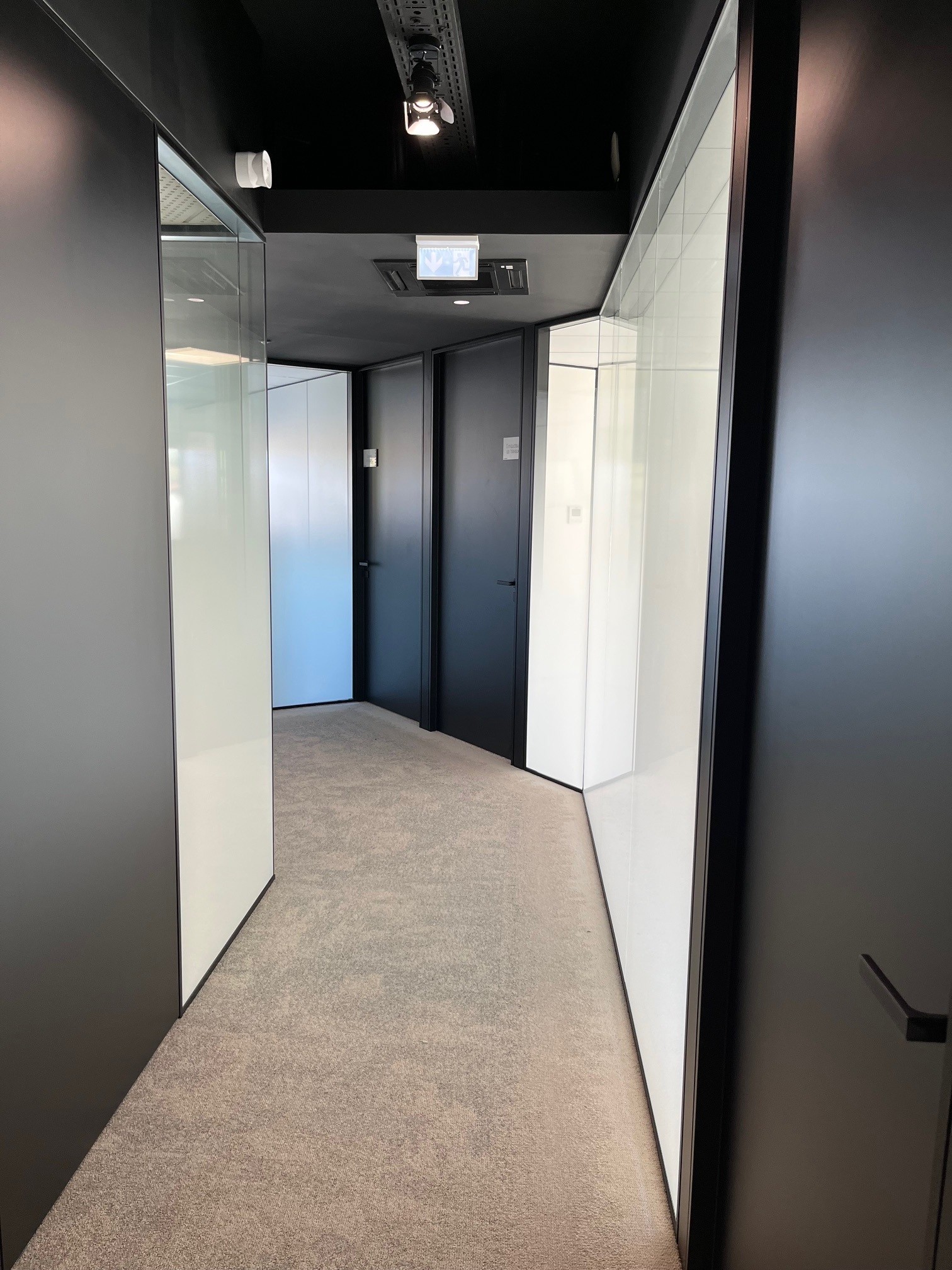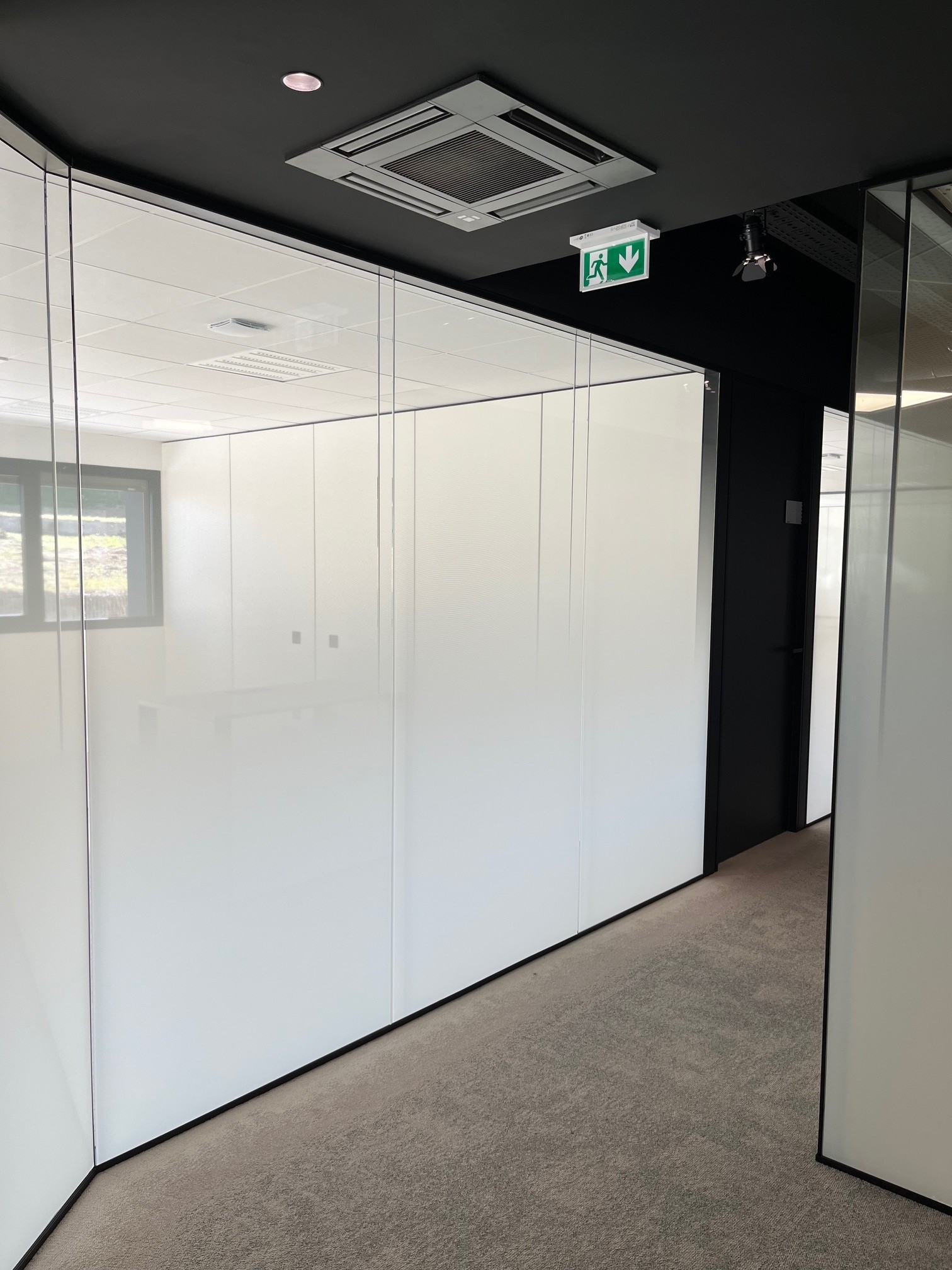 Sur ce chantier, notre équipe a réalisé la fourniture et la pose de cloisons vitrées toute hauteur pour un rendu à la fois moderne, lumineux et élégant.